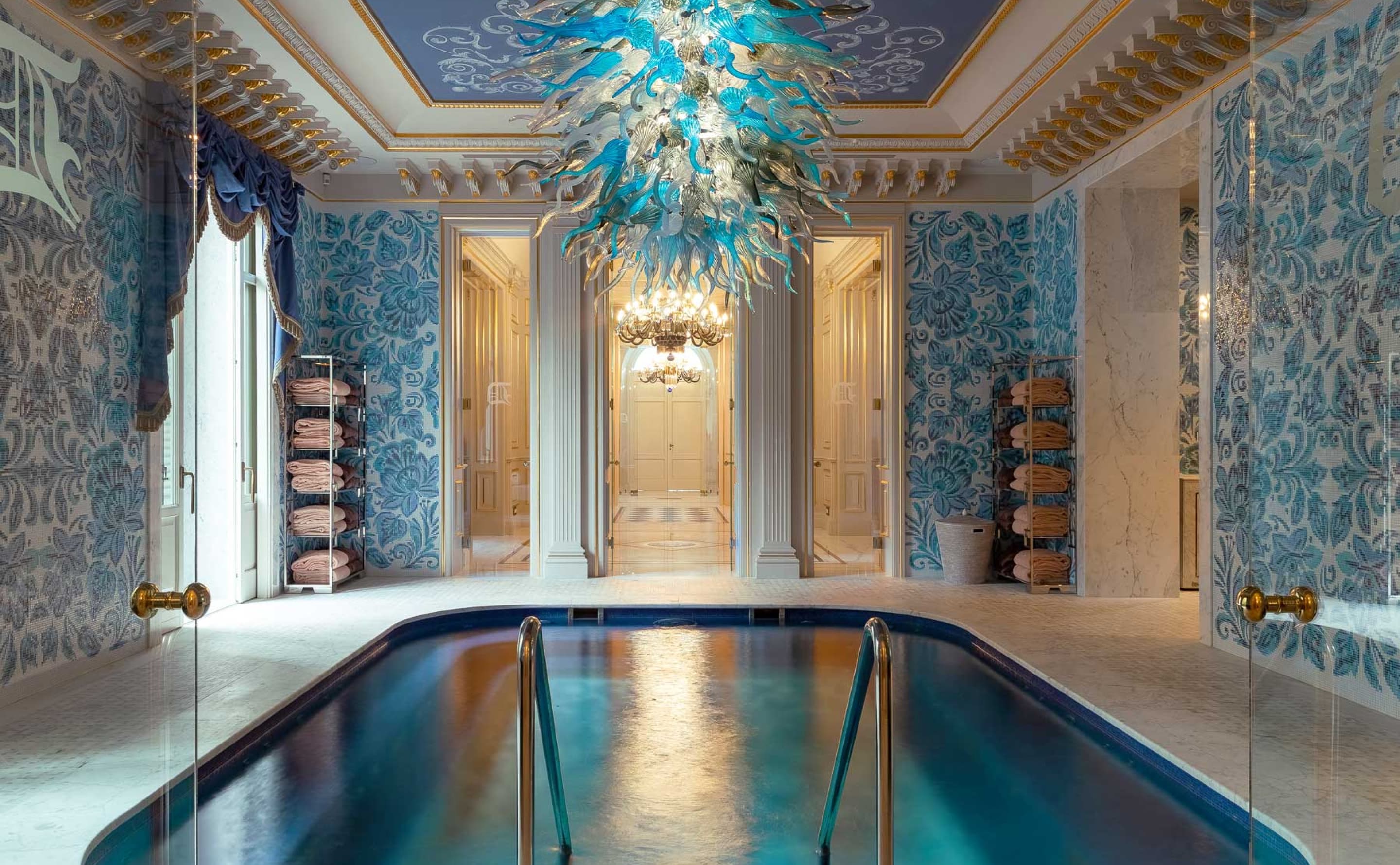 В глубине палаццо на первом этаже архитекторы расположили зону для солнечных ванн и плавания. Гости здесь плавают в бассейне, а после — переходят в парную или хаммам, — чтобы расслабить уставшие мышцы.